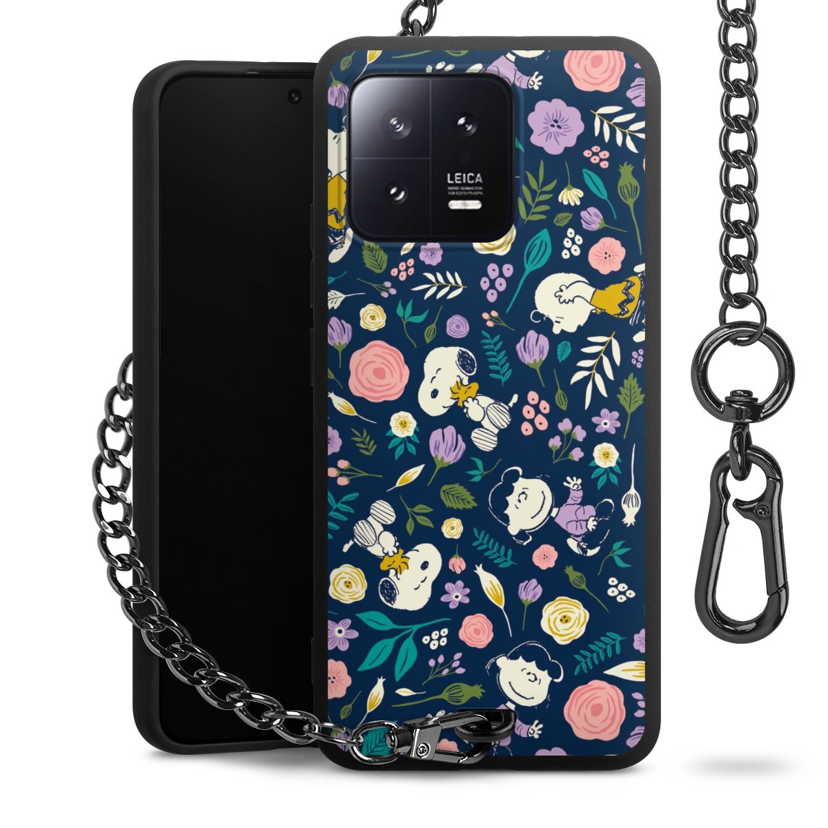 • Mattschwarze Handyhülle mit Metallkette