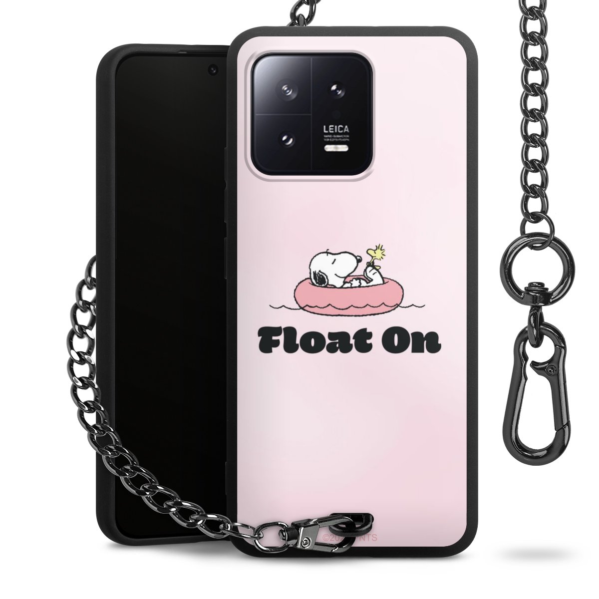 Die Handyhülle verfügt über eine mittig am unteren Rand platzierte Öse, an der die Metallkette stabil befestigt ist. Bestelle die Hülle einfach für Dein Smartphone-Modell, dann passt sie wie angegossen und Du brauchst sie bloß einmal anzudrücken. Handy in die Tasche, Karabiner an den Hosenbund – schon kann die Party starten.