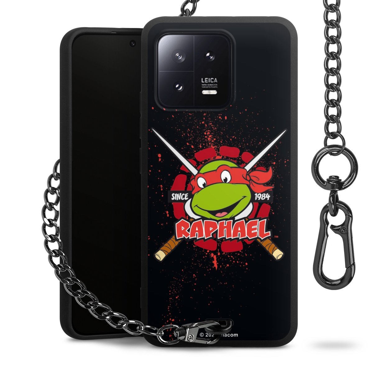 - Mattschwarze Handyhülle mit Metallkette