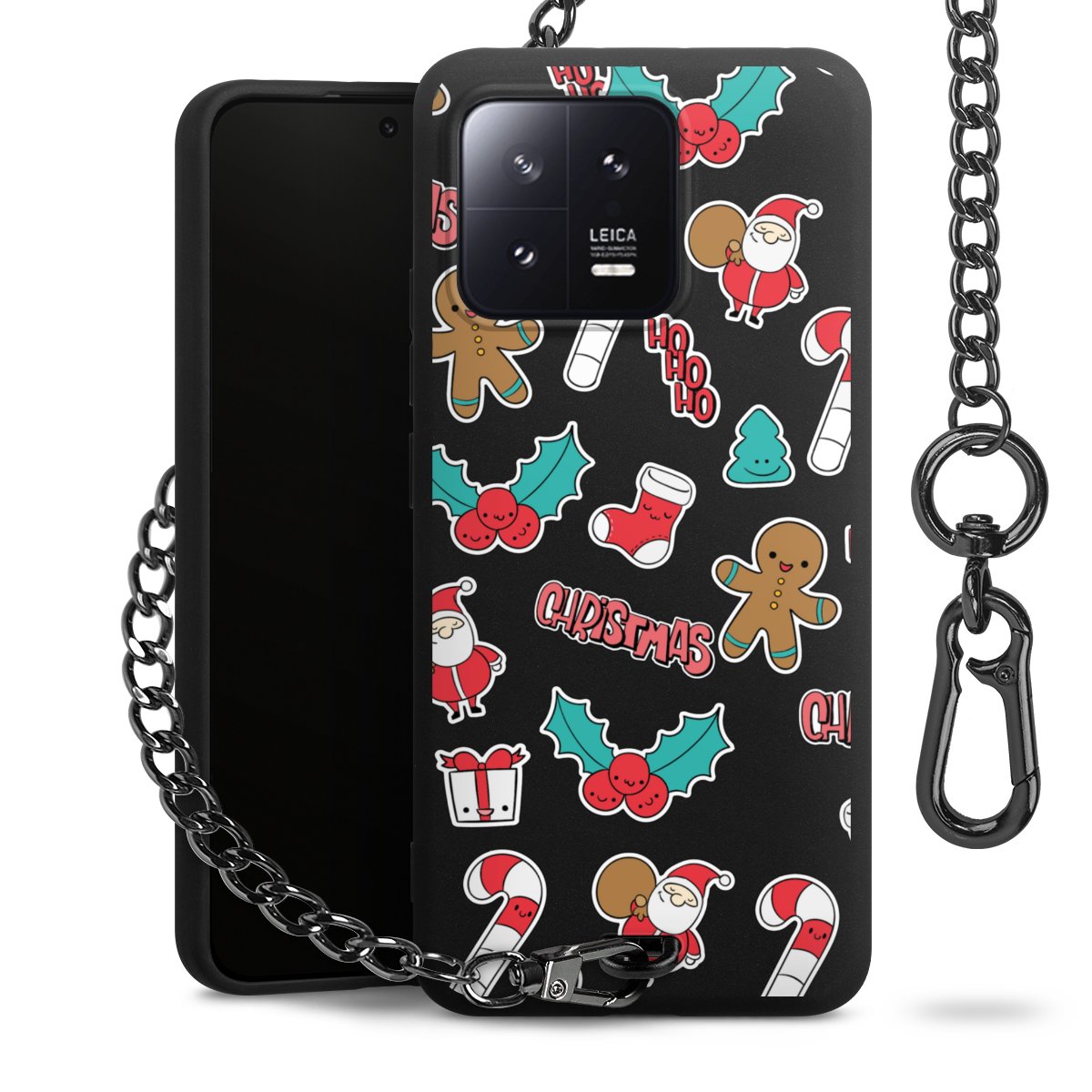 • Mattschwarze Handyhülle mit Metallkette