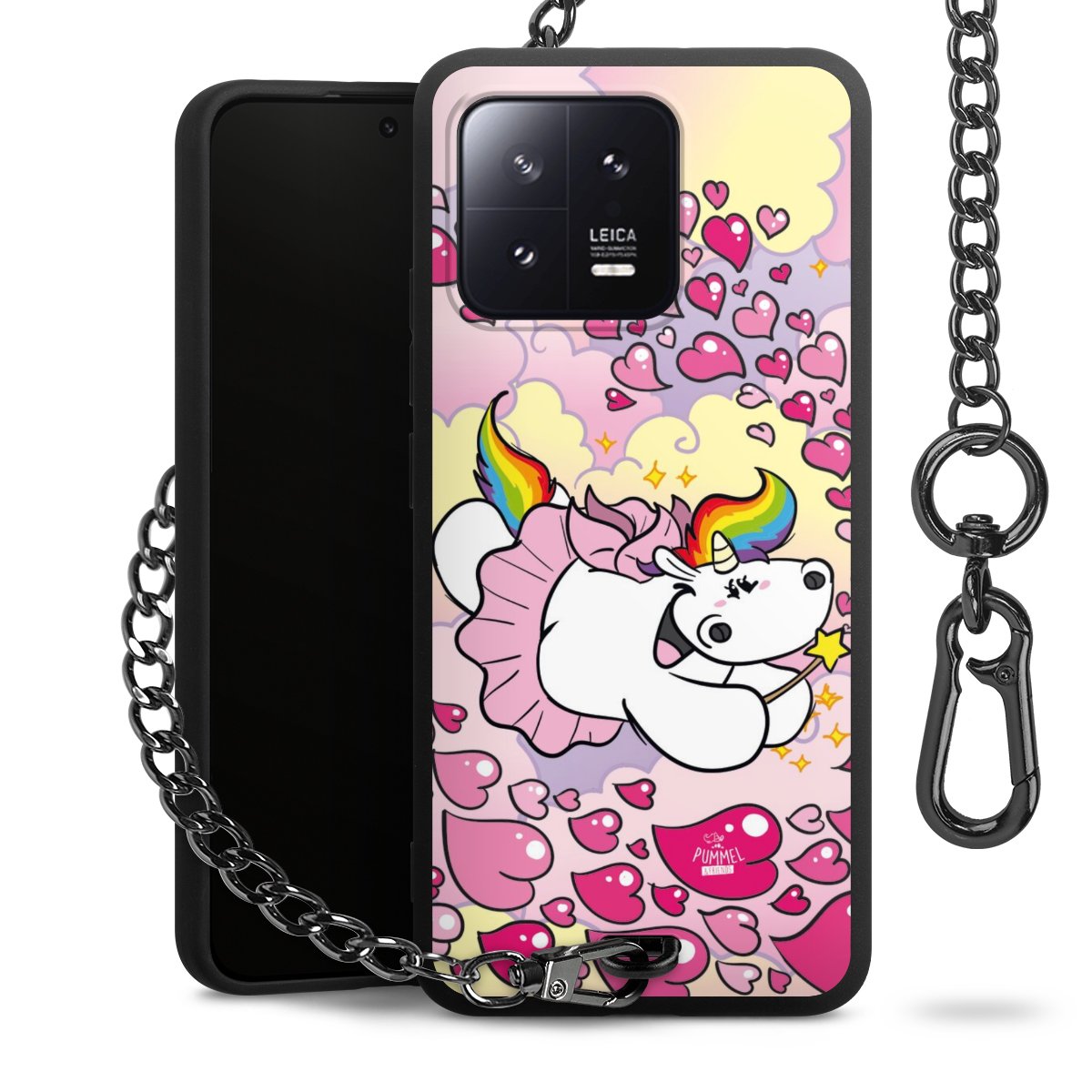 Die mattschwarze Silikon-Handyhülle besteht aus robustem TPU (thermoplastisches Polyurethan). Sie ist flexibel und schützt Dein Smartphone vor Stößen und Kratzern. Die Kette sowie der Karabinerhaken sind aus Metall in Gunmetal-Optik gefertigt. Für dieses Produkt kommen ausschließlich TÜV-geprüfte Materialien zum Einsatz.