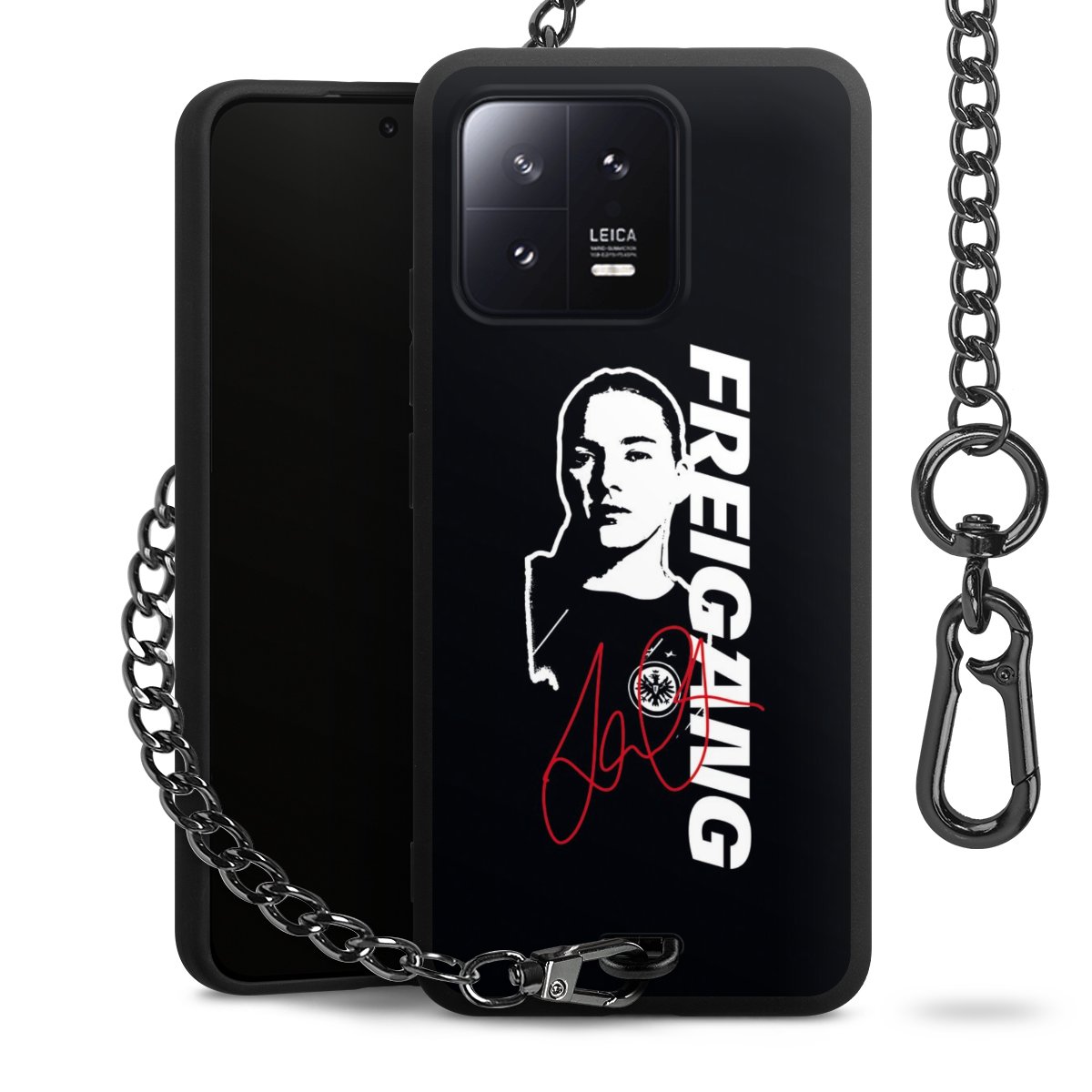 • Mattschwarze Handyhülle mit Metallkette