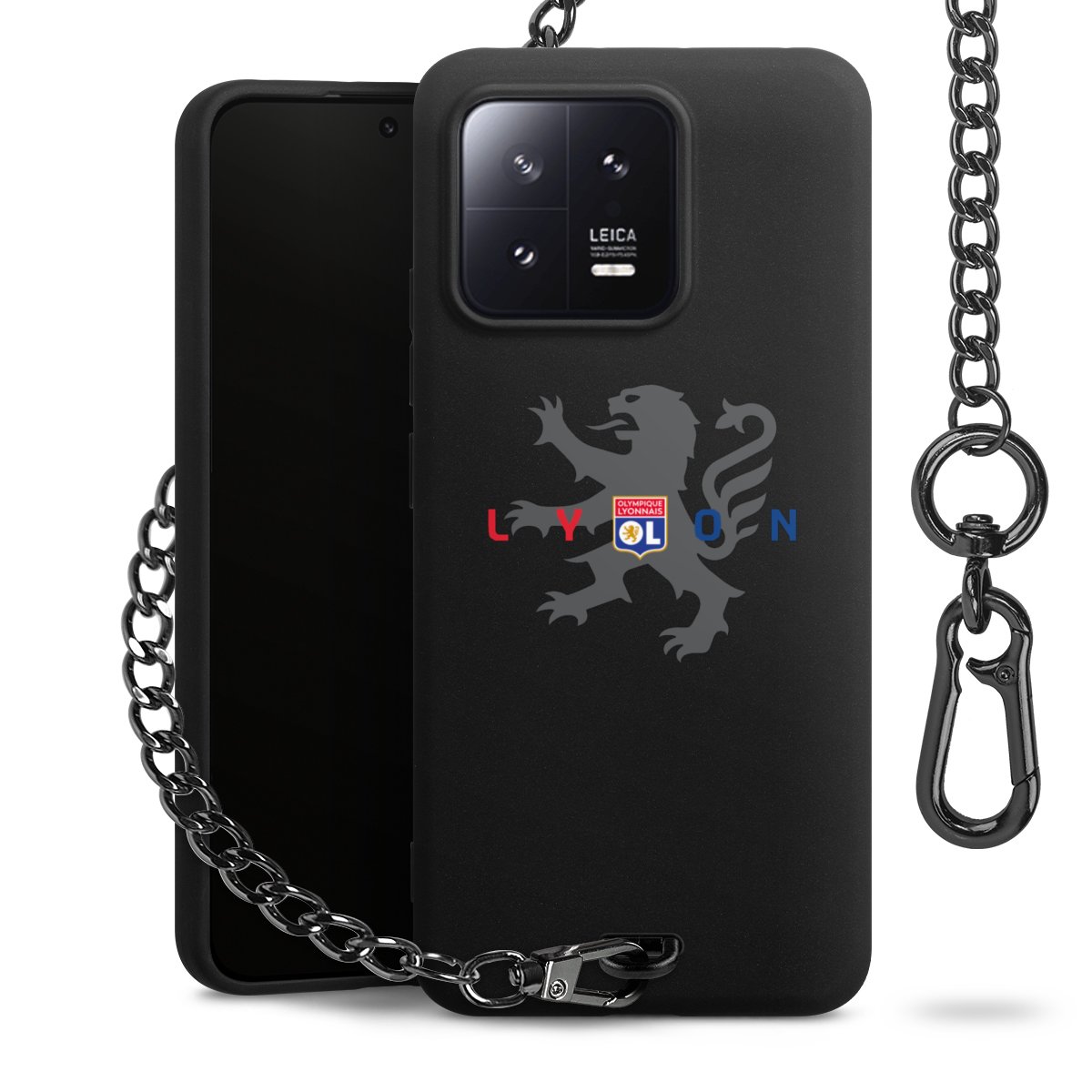 • Mattschwarze Handyhülle mit Metallkette