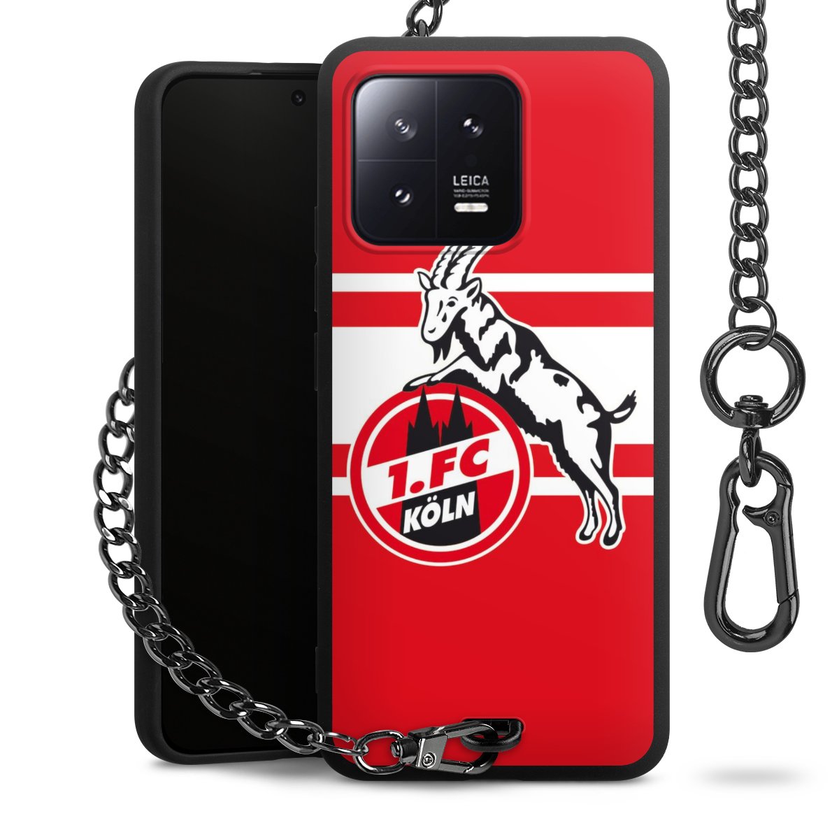 Die Handyhülle verfügt über eine mittig am unteren Rand platzierte Öse, an der die Metallkette stabil befestigt ist. Bestelle die Hülle einfach für Dein Smartphone-Modell, dann passt sie wie angegossen und Du brauchst sie bloß einmal anzudrücken. Handy in die Tasche, Karabiner an den Hosenbund – schon kann die Party starten.