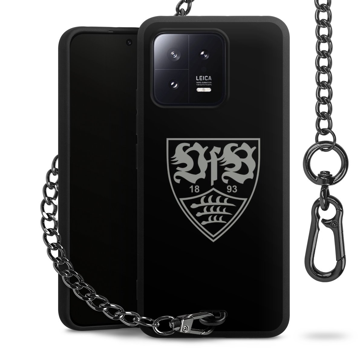 • Mattschwarze Handyhülle mit Metallkette