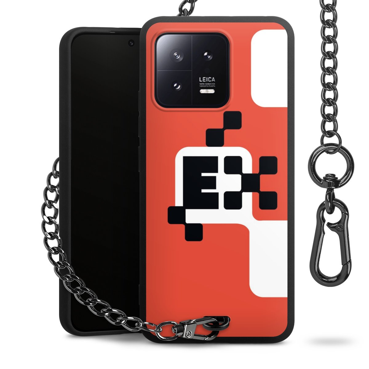 • Mattschwarze Handyhülle mit Metallkette