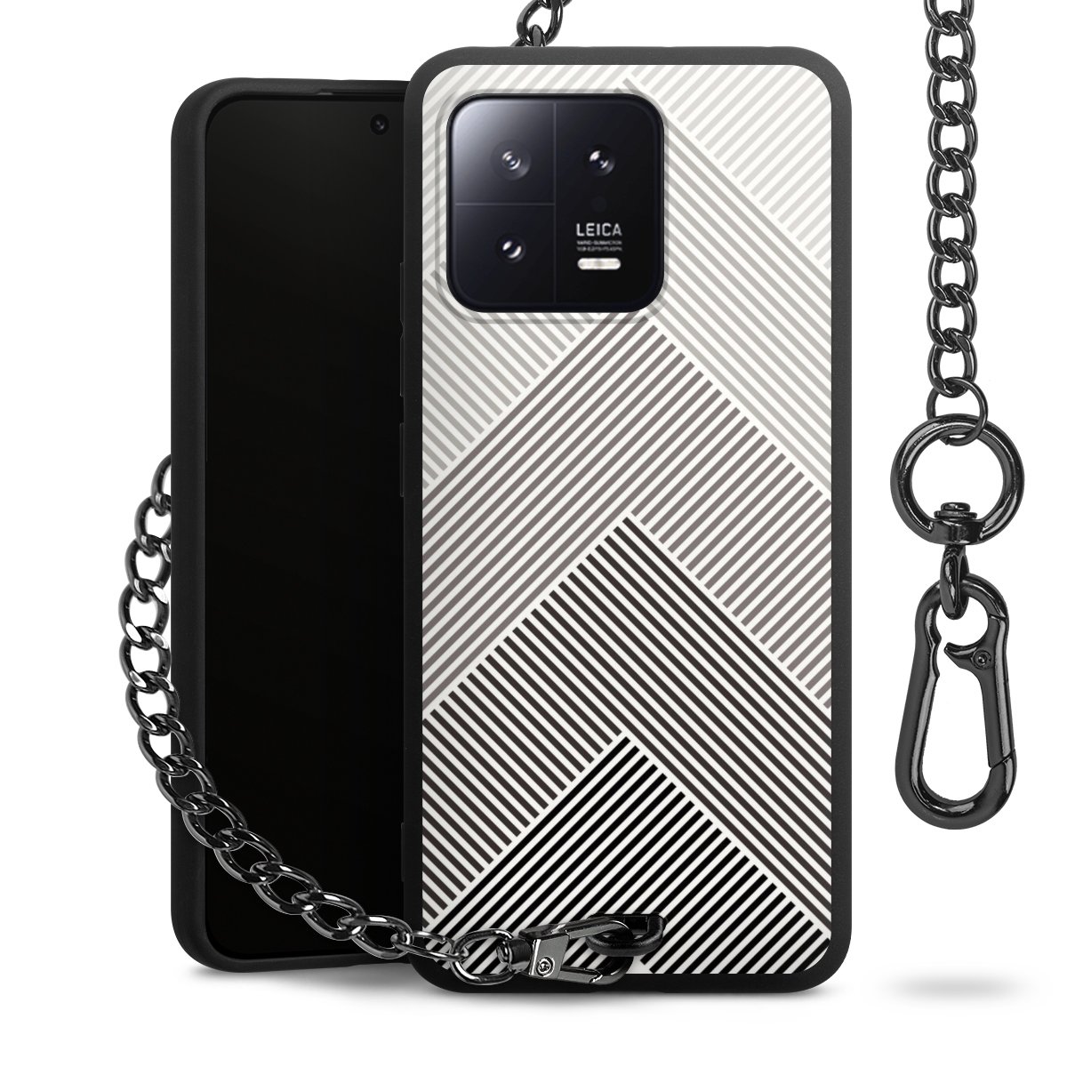 • Mattschwarze Handyhülle mit Metallkette