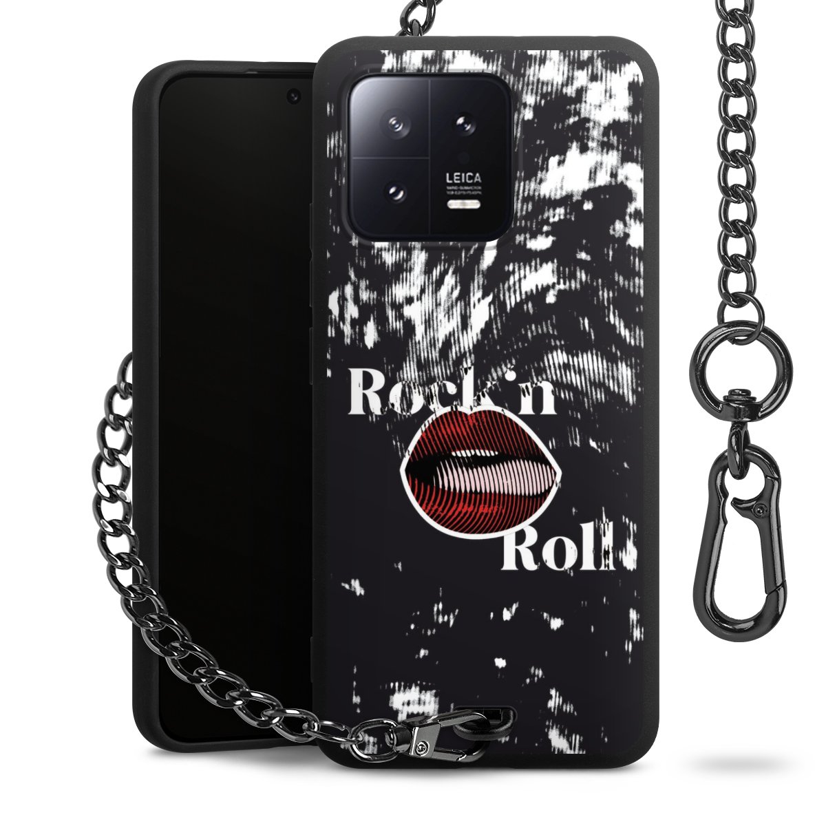- Mattschwarze Handyhülle mit Metallkette