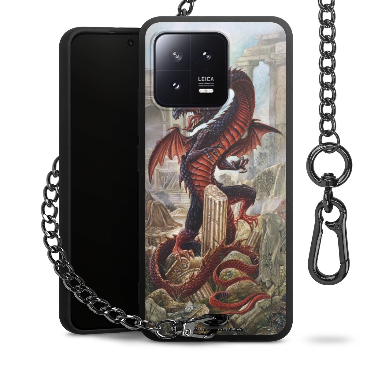 • Mattschwarze Handyhülle mit Metallkette