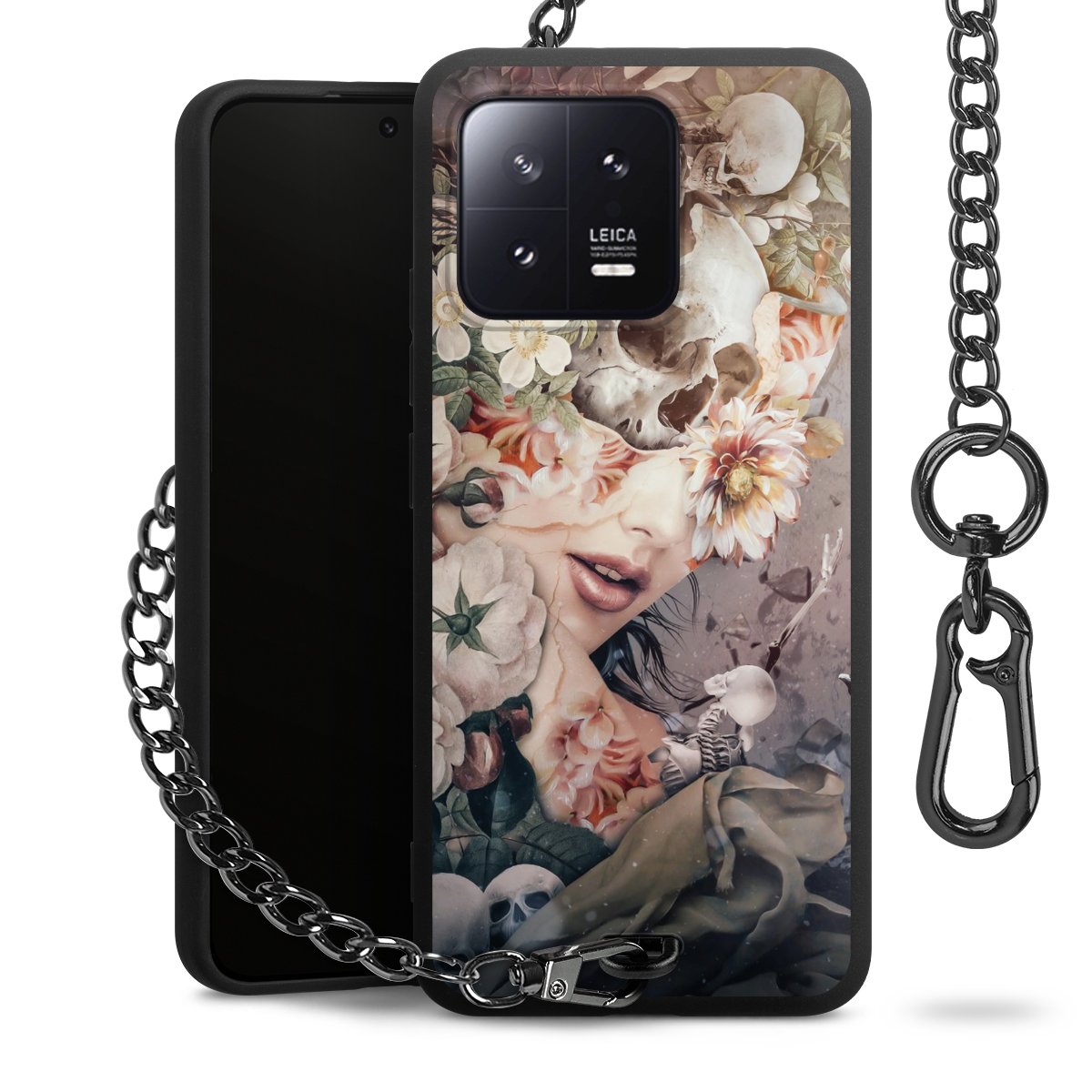 • Mattschwarze Handyhülle mit Metallkette