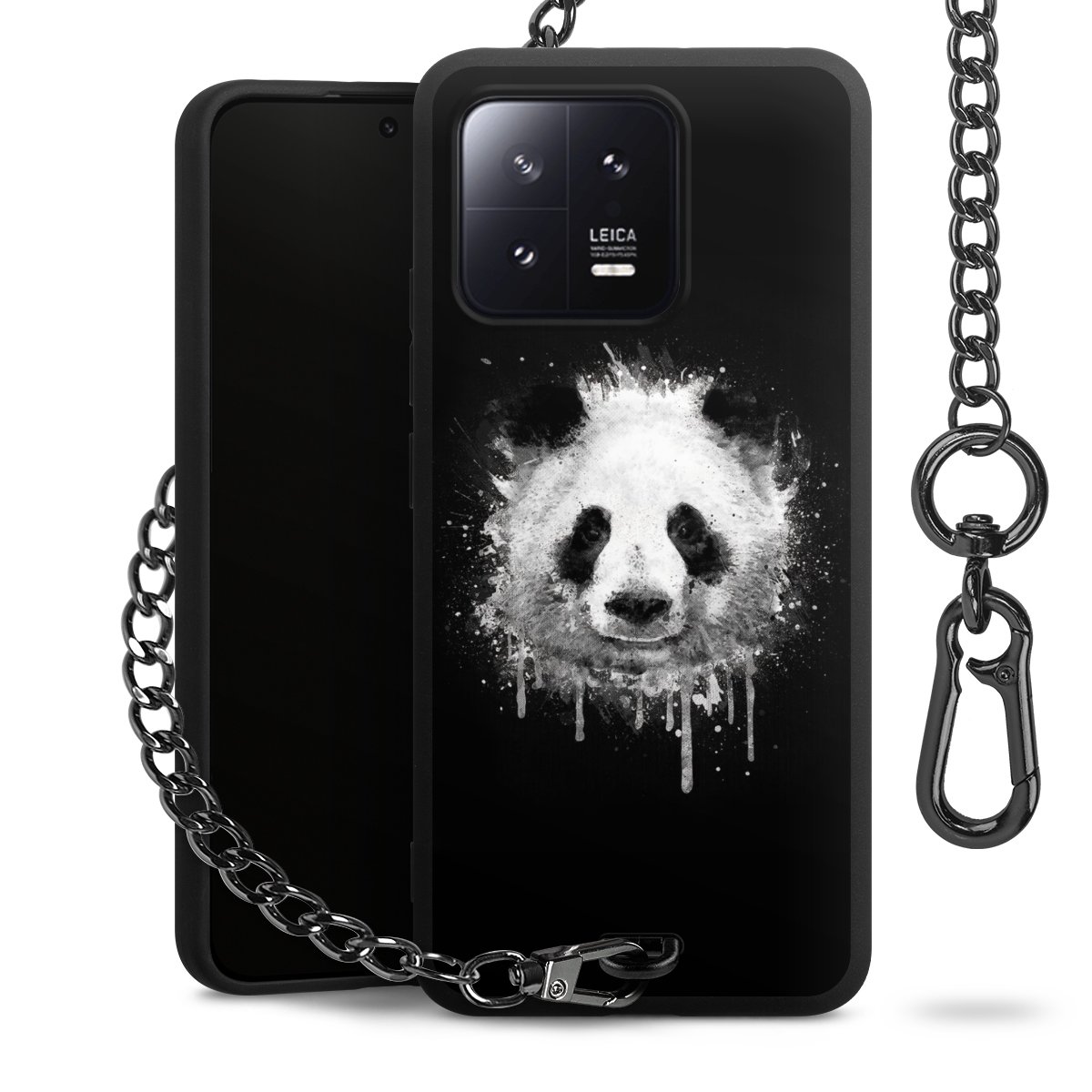 • Mattschwarze Handyhülle mit Metallkette