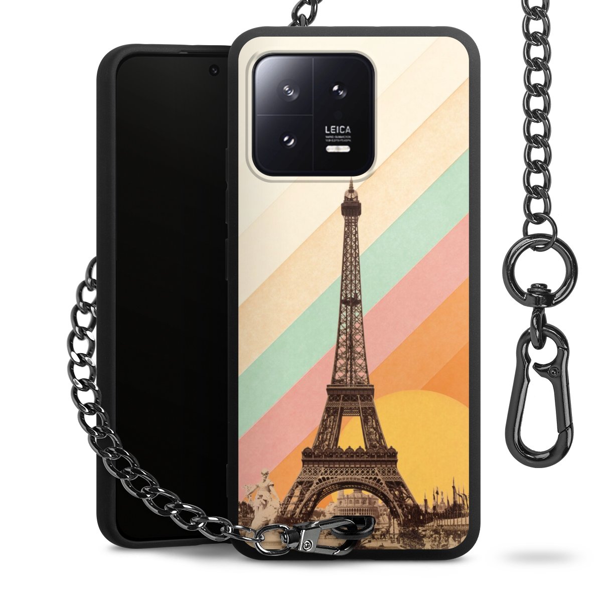 • Mattschwarze Handyhülle mit Metallkette