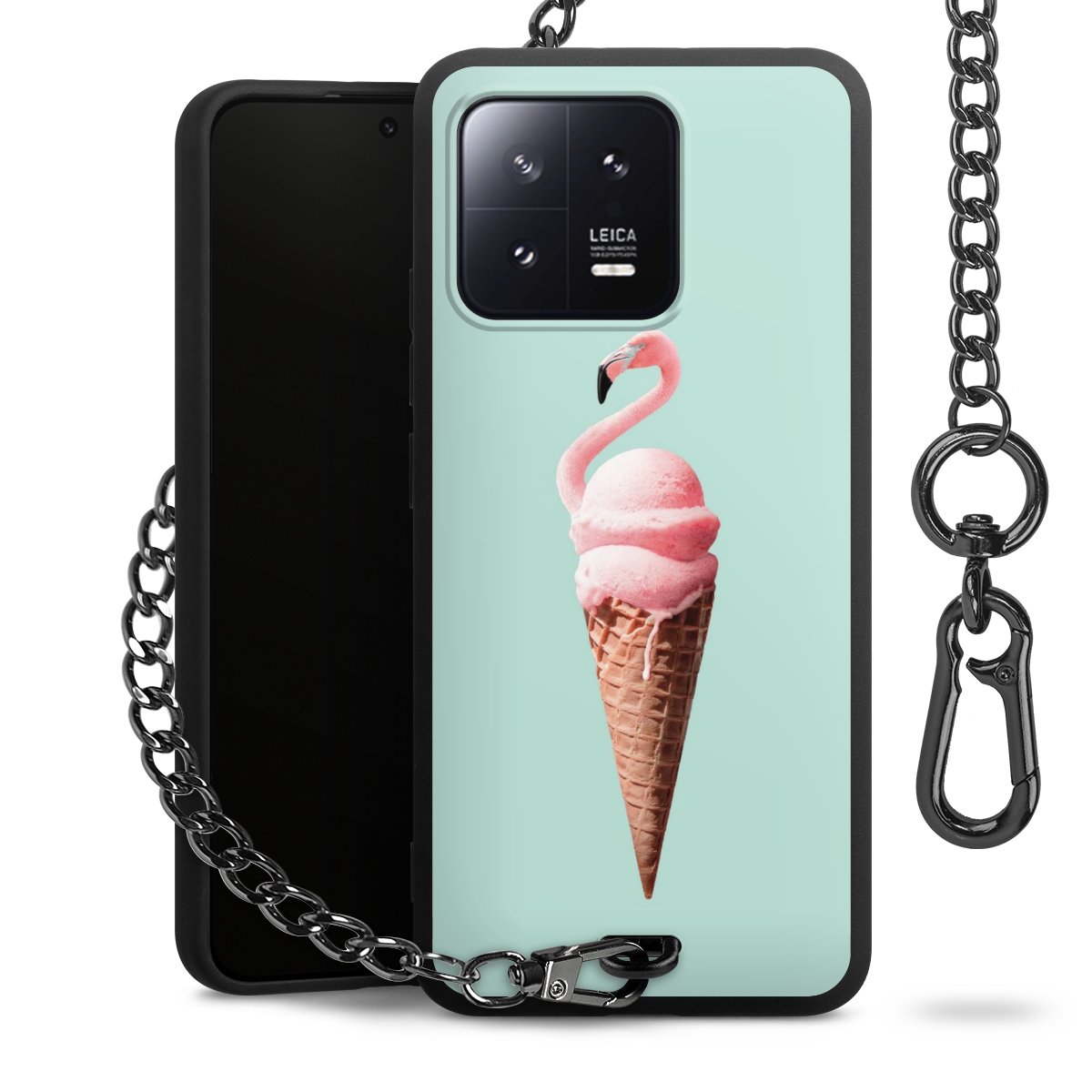 • Mattschwarze Handyhülle mit Metallkette