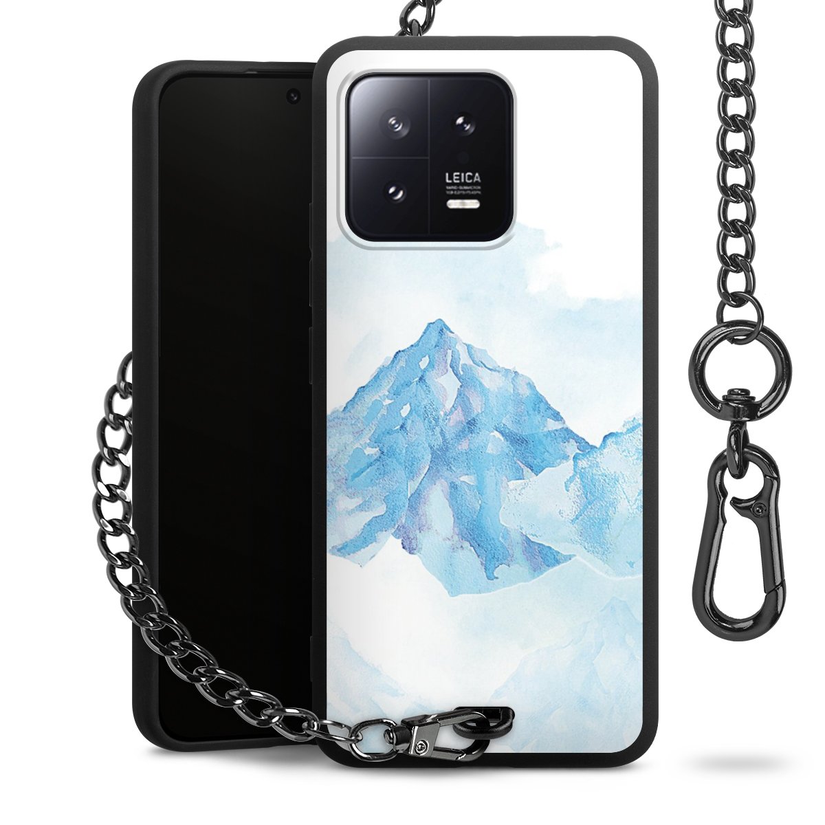 - Mattschwarze Handyhülle mit Metallkette