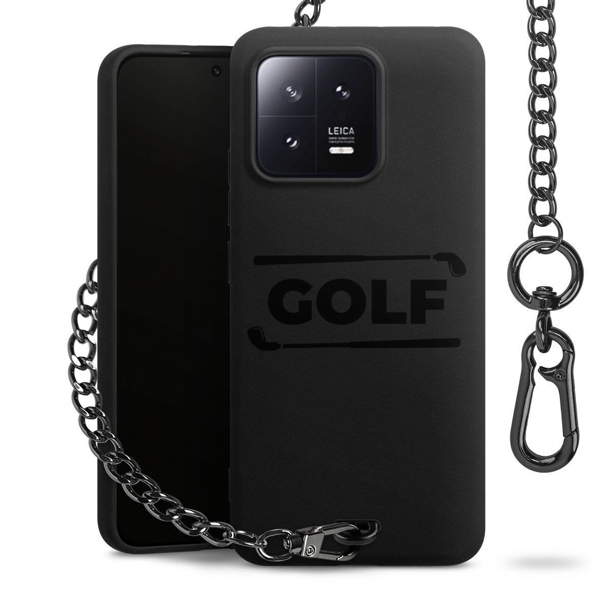 • Mattschwarze Handyhülle mit Metallkette