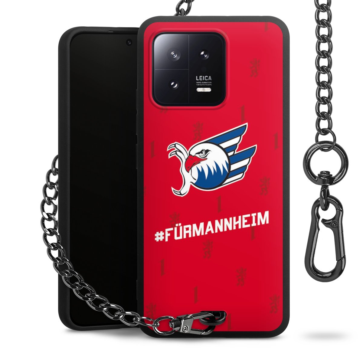 • Mattschwarze Handyhülle mit Metallkette