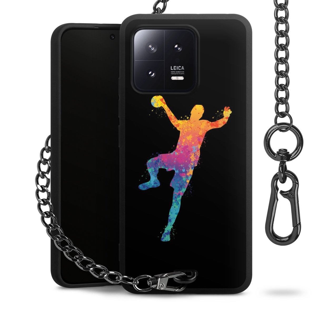 - Mattschwarze Handyhülle mit Metallkette