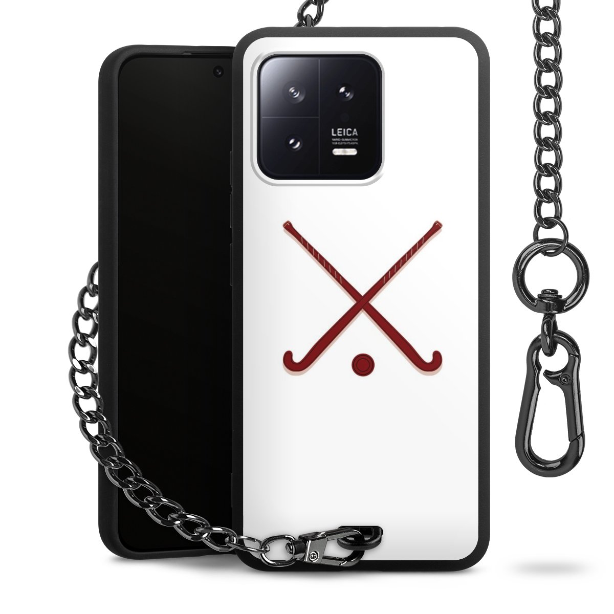 • Mattschwarze Handyhülle mit Metallkette