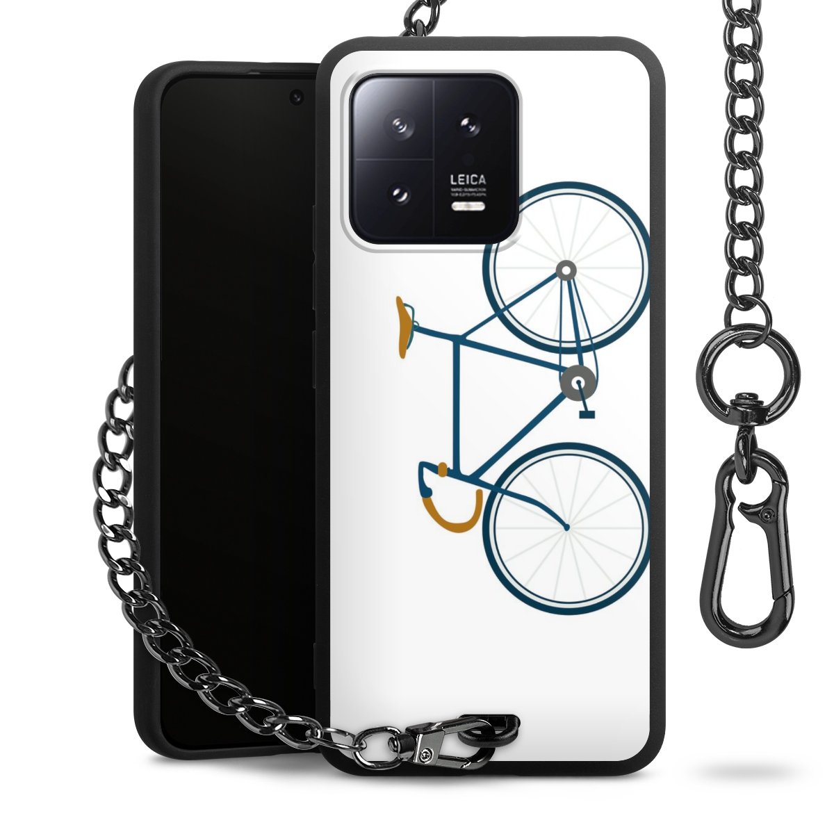 - Mattschwarze Handyhülle mit Metallkette