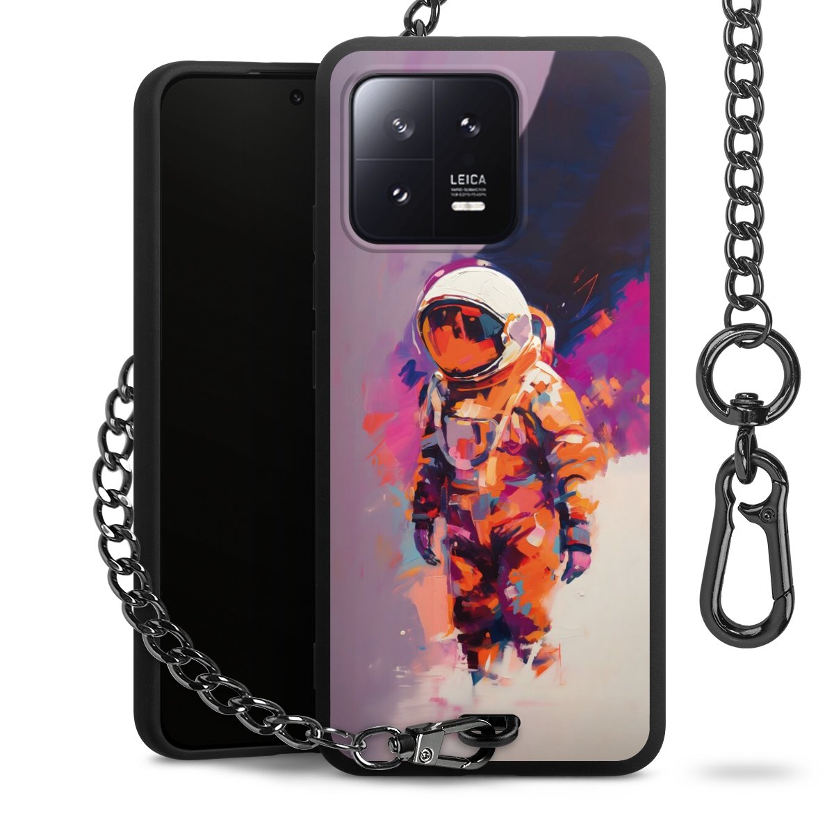 • Mattschwarze Handyhülle mit Metallkette
