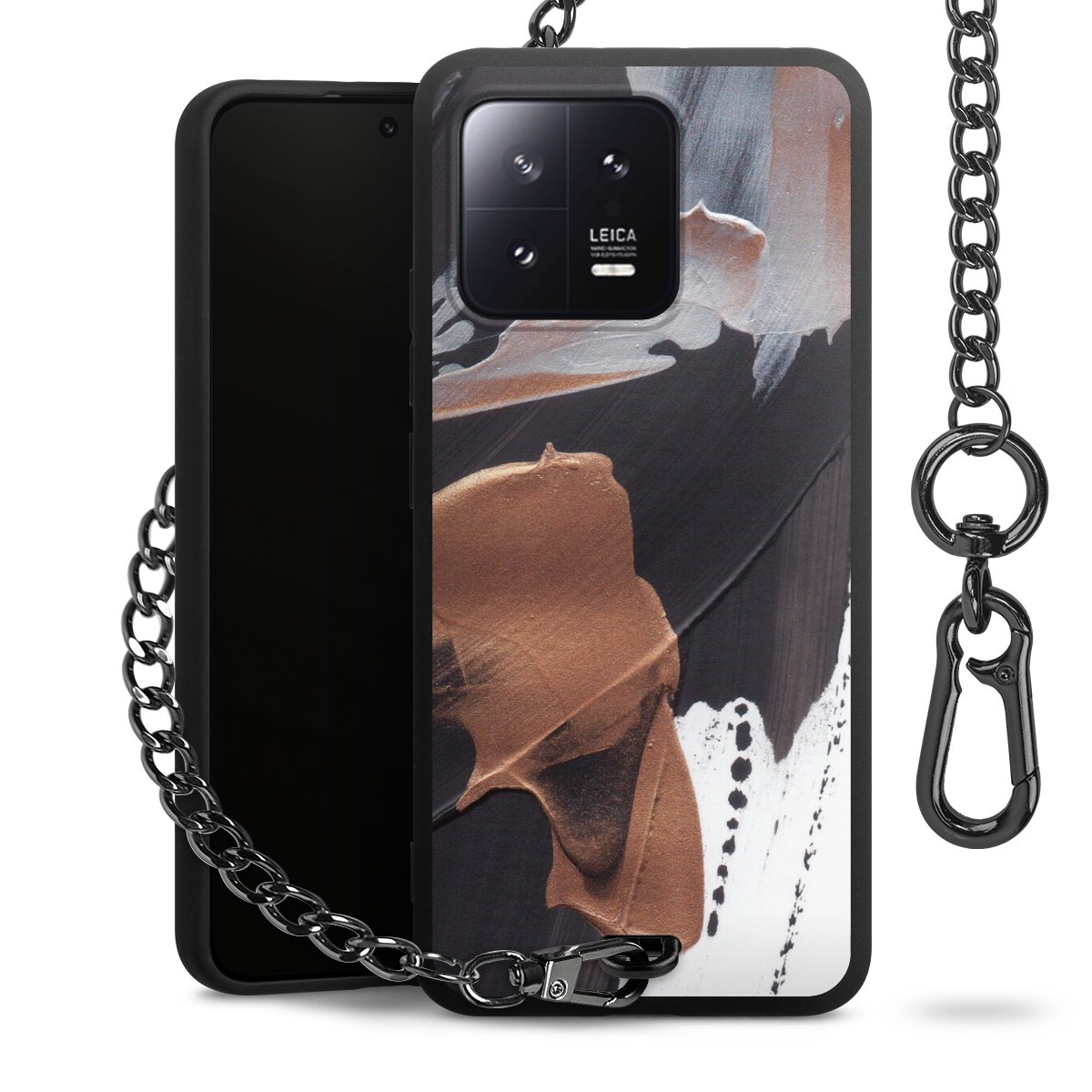 • Mattschwarze Handyhülle mit Metallkette