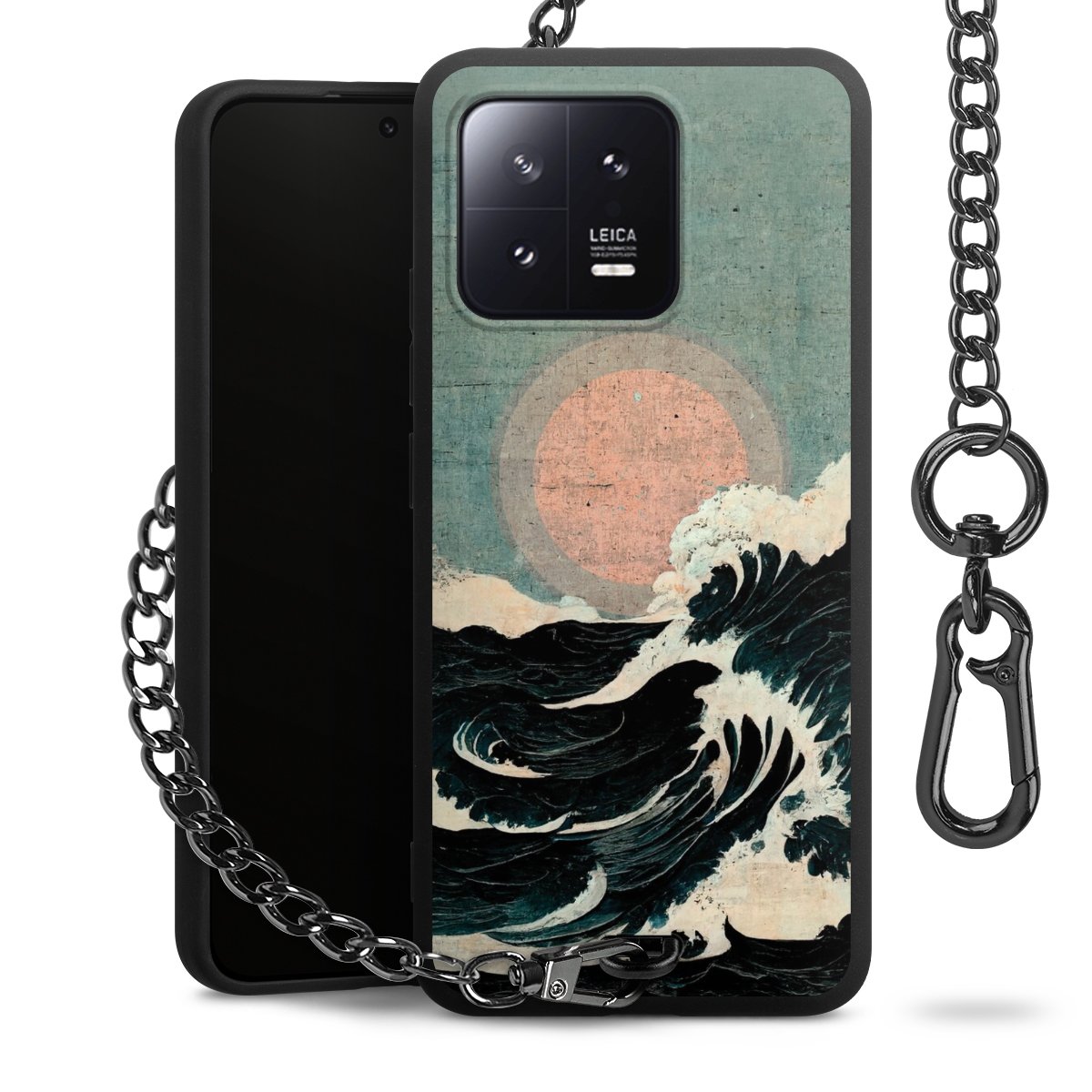 • Mattschwarze Handyhülle mit Metallkette