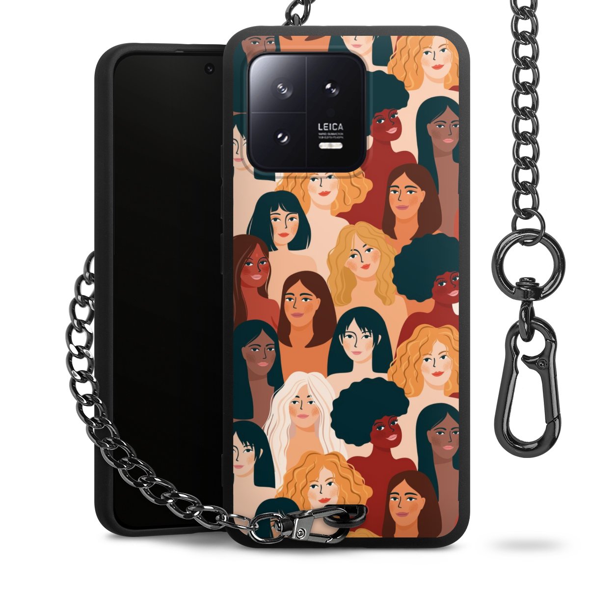 • Mattschwarze Handyhülle mit Metallkette