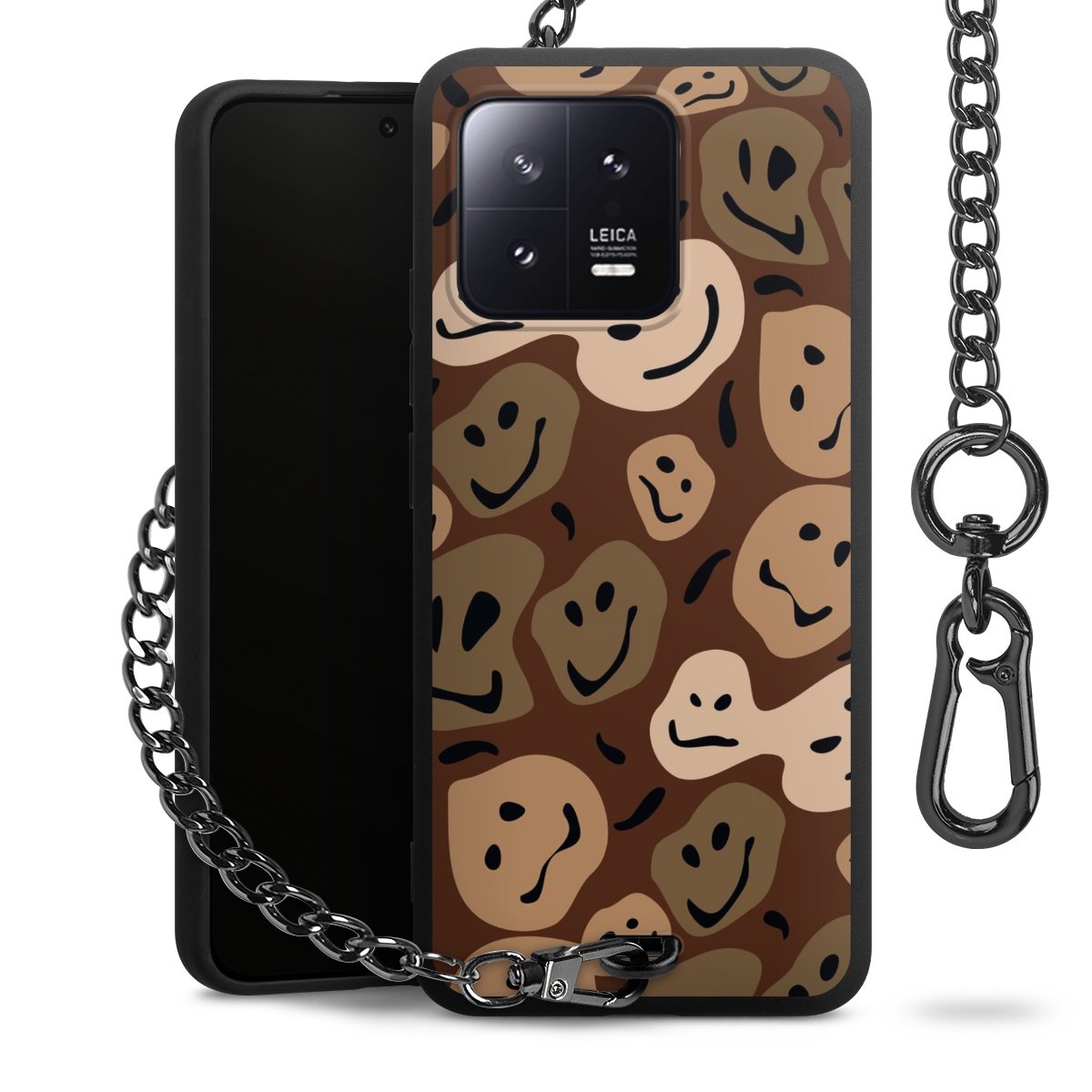 - Mattschwarze Handyhülle mit Metallkette