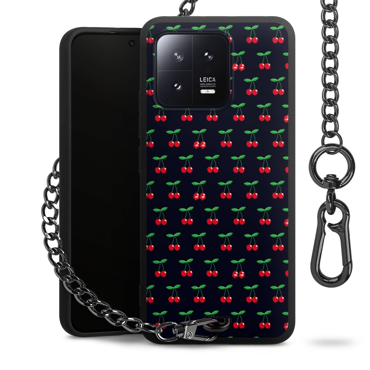 - Mattschwarze Handyhülle mit Metallkette