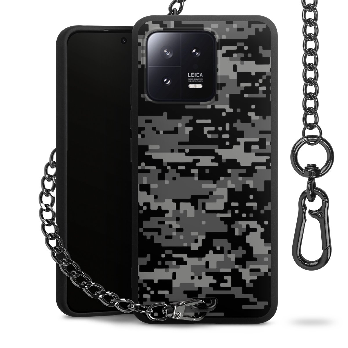 • Mattschwarze Handyhülle mit Metallkette