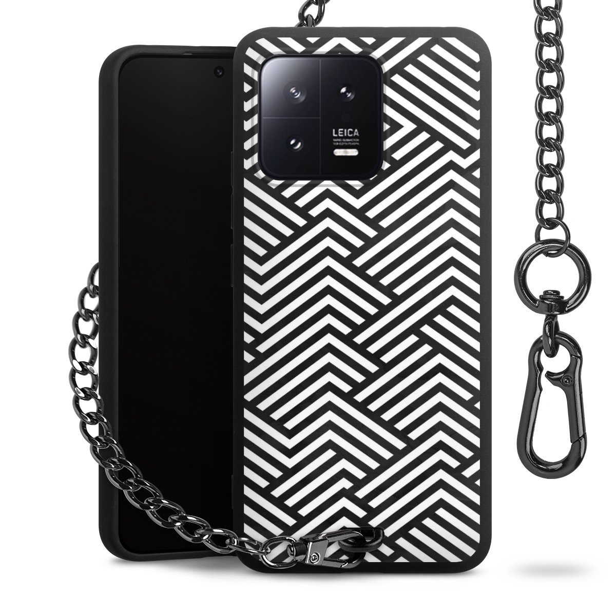 • Mattschwarze Handyhülle mit Metallkette