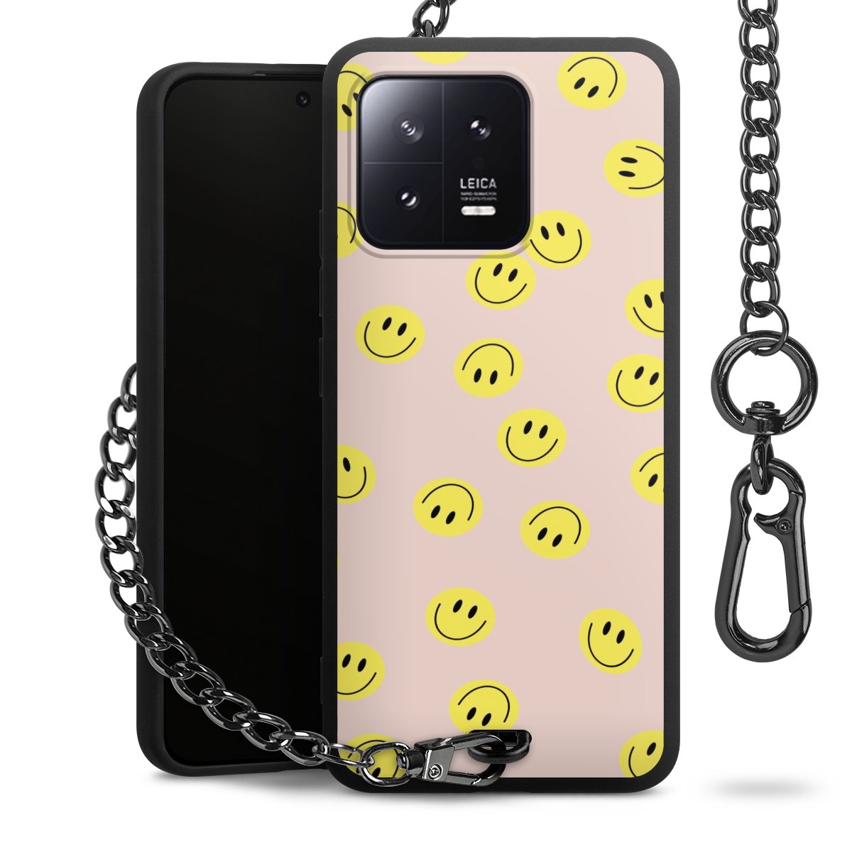• Mattschwarze Handyhülle mit Metallkette