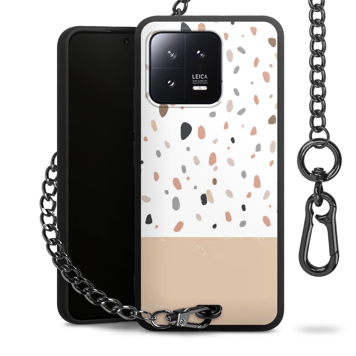 • Mattschwarze Handyhülle mit Metallkette