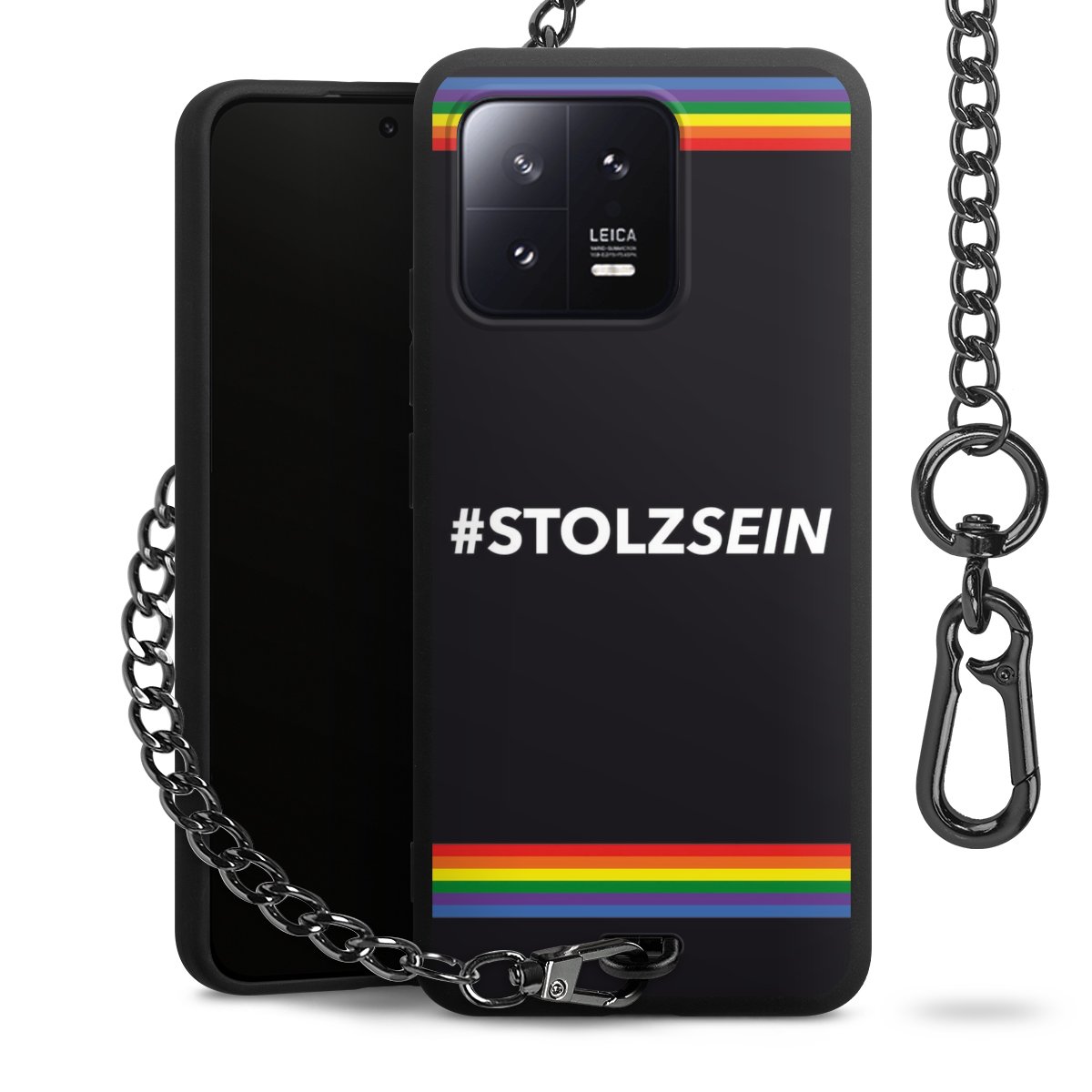 • Mattschwarze Handyhülle mit Metallkette