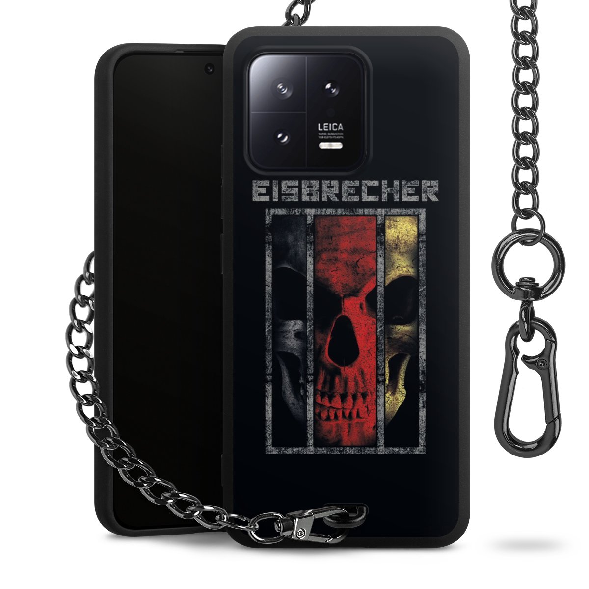 • Mattschwarze Handyhülle mit Metallkette