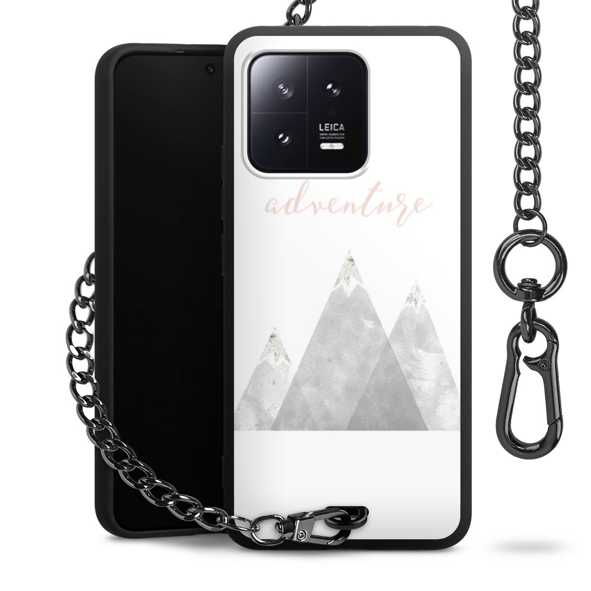 • Mattschwarze Handyhülle mit Metallkette