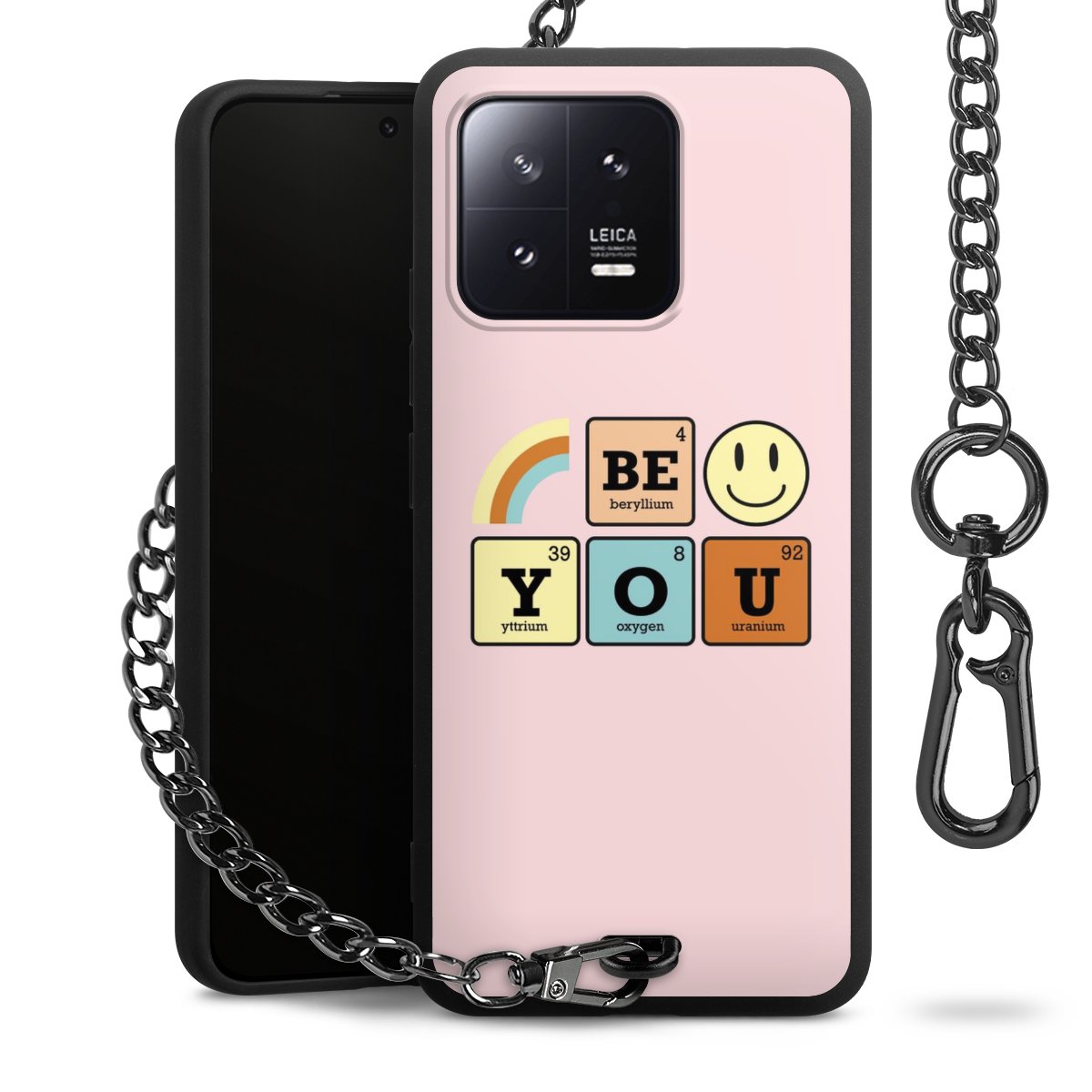 Die mattschwarze Silikon-Handyhülle besteht aus robustem TPU (thermoplastisches Polyurethan). Sie ist flexibel und schützt Dein Smartphone vor Stößen und Kratzern. Die Kette sowie der Karabinerhaken sind aus Metall in Gunmetal-Optik gefertigt. Für dieses Produkt kommen ausschließlich TÜV-geprüfte Materialien zum Einsatz.