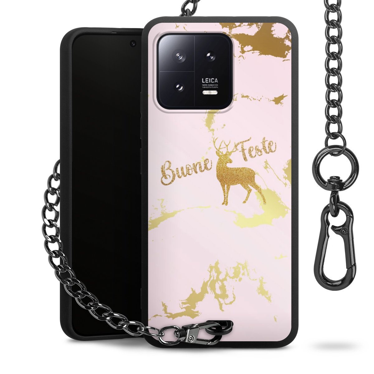 - Mattschwarze Handyhülle mit Metallkette