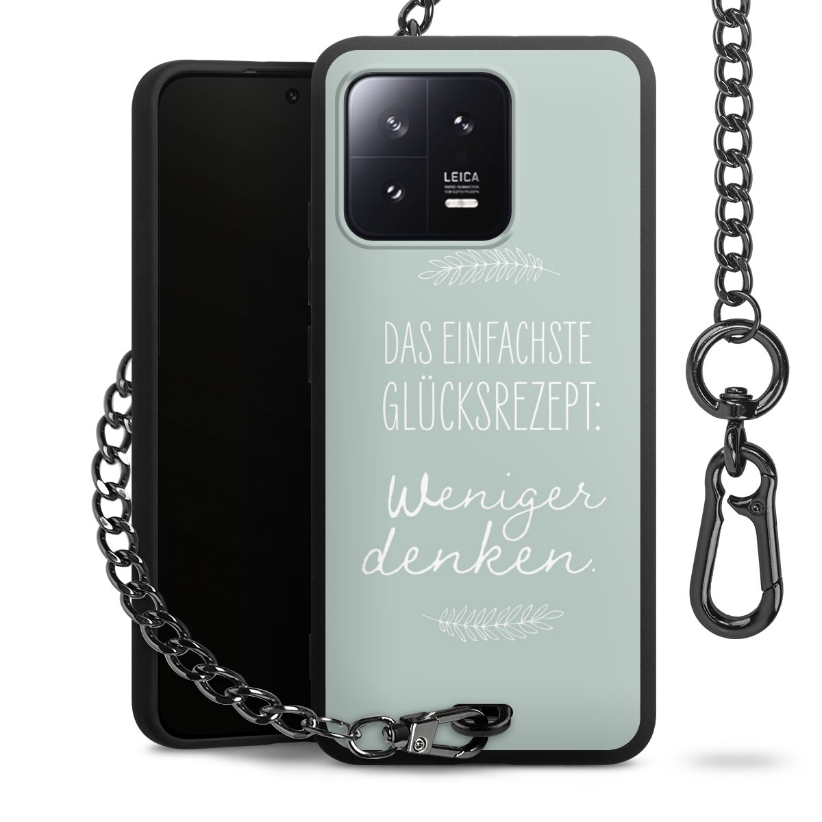 Die mattschwarze Silikon-Handyhülle besteht aus robustem TPU (thermoplastisches Polyurethan). Sie ist flexibel und schützt Dein Smartphone vor Stößen und Kratzern. Die Kette sowie der Karabinerhaken sind aus Metall in Gunmetal-Optik gefertigt. Für dieses Produkt kommen ausschließlich TÜV-geprüfte Materialien zum Einsatz.