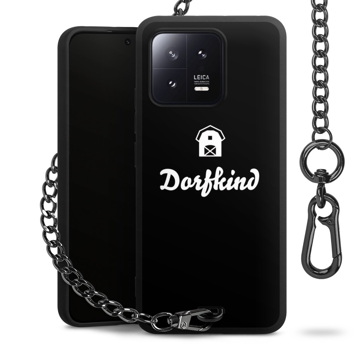 • Mattschwarze Handyhülle mit Metallkette