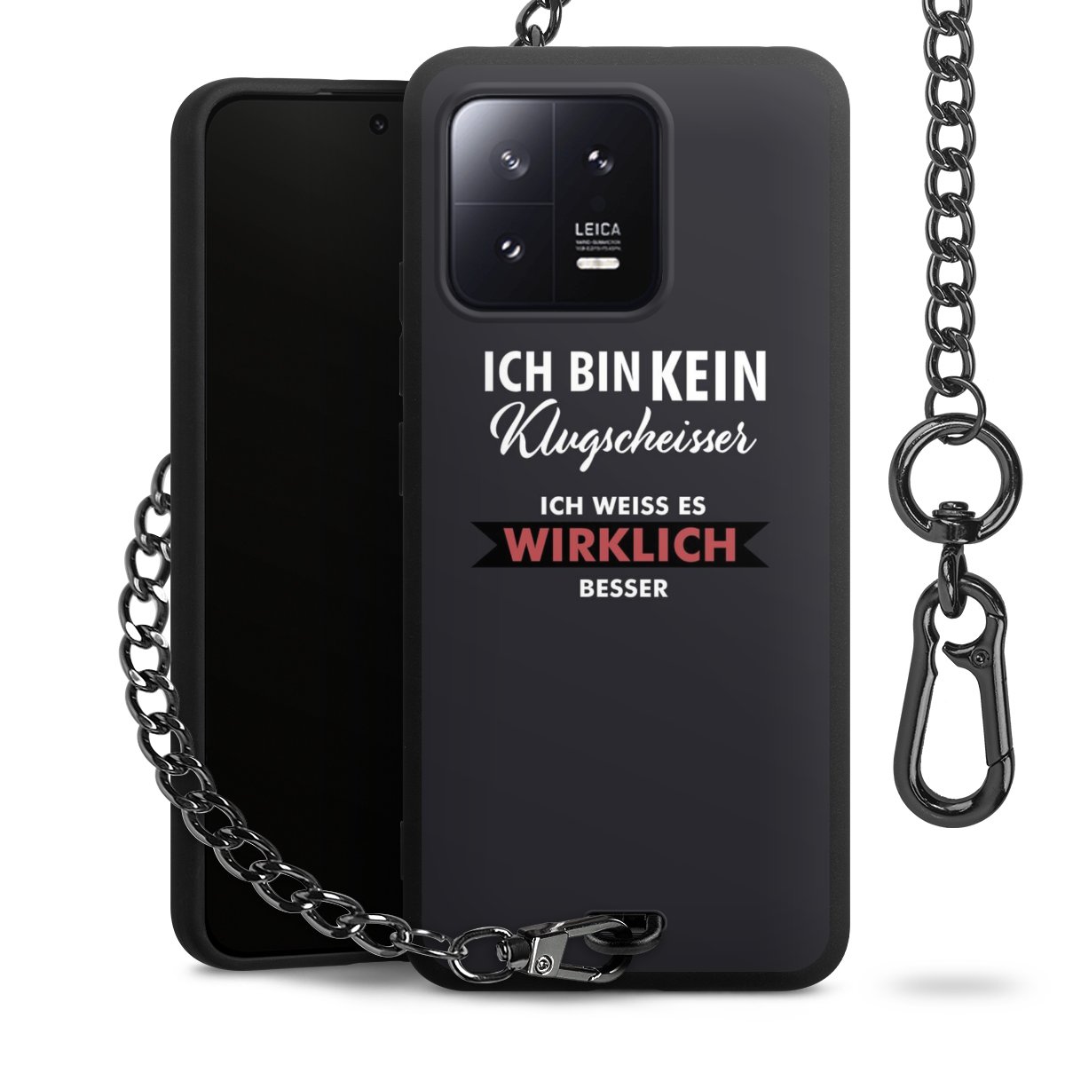 - Mattschwarze Handyhülle mit Metallkette