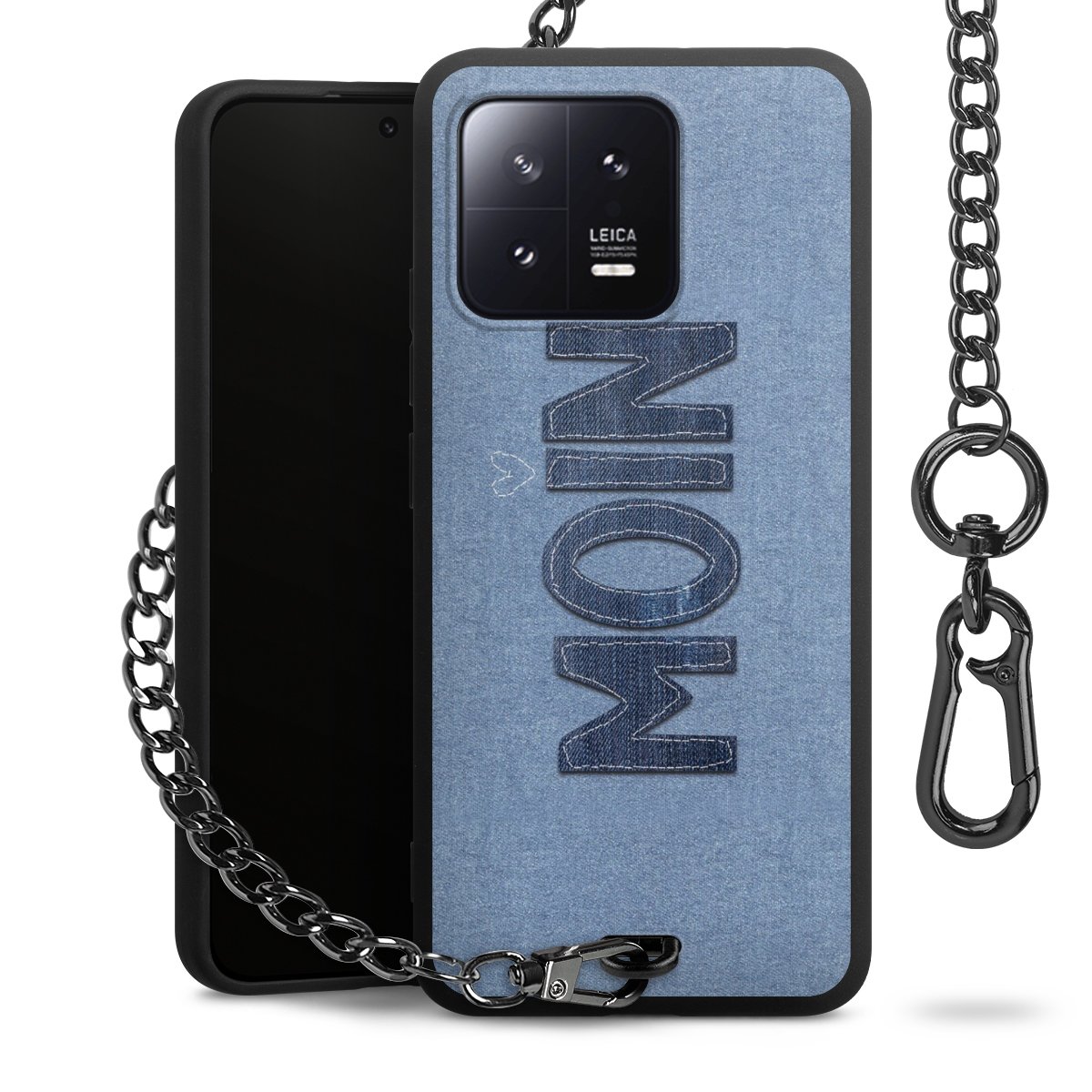 • Mattschwarze Handyhülle mit Metallkette