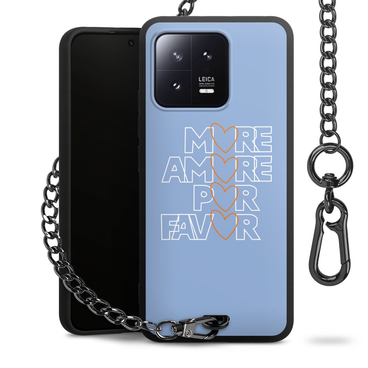 - Mattschwarze Handyhülle mit Metallkette