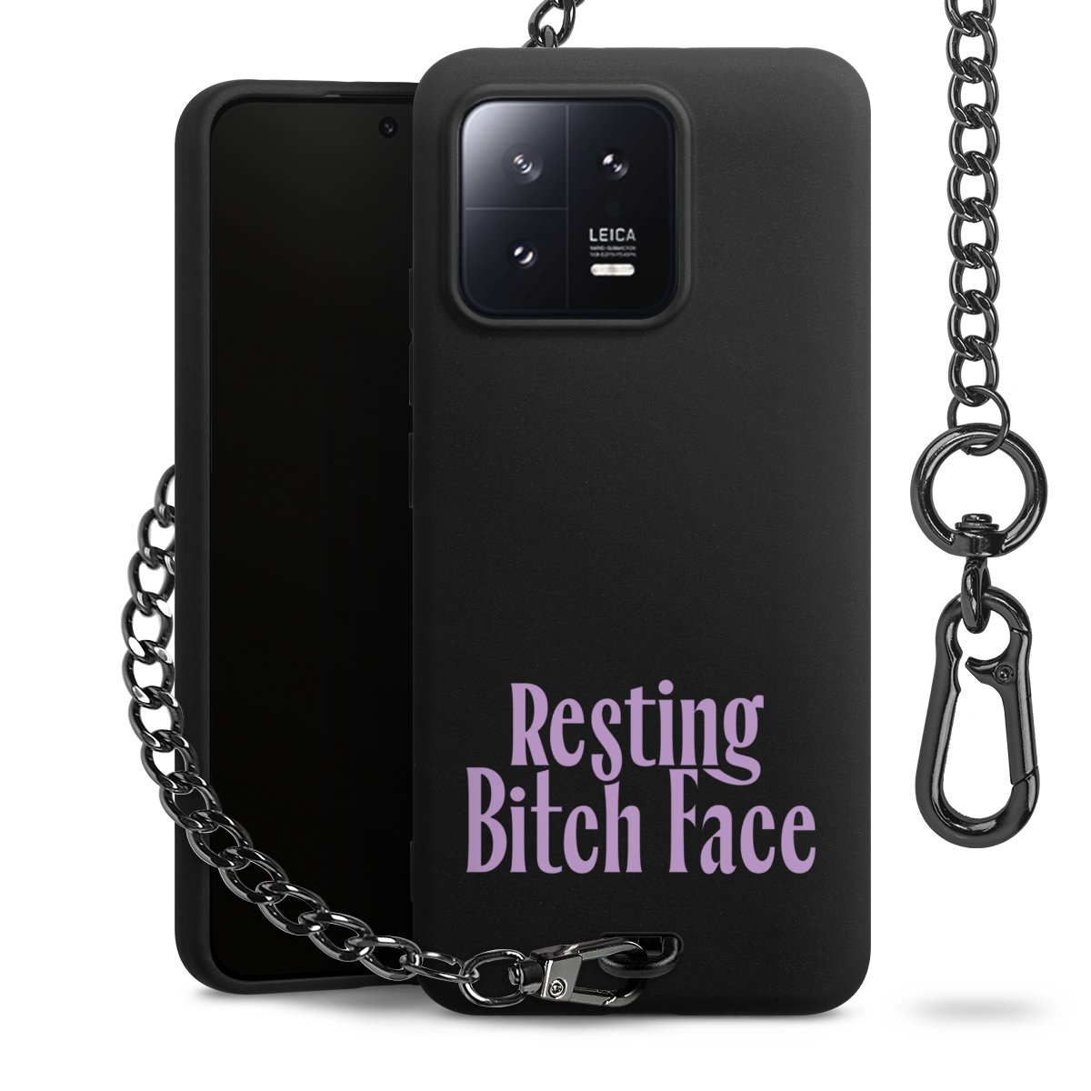 - Mattschwarze Handyhülle mit Metallkette