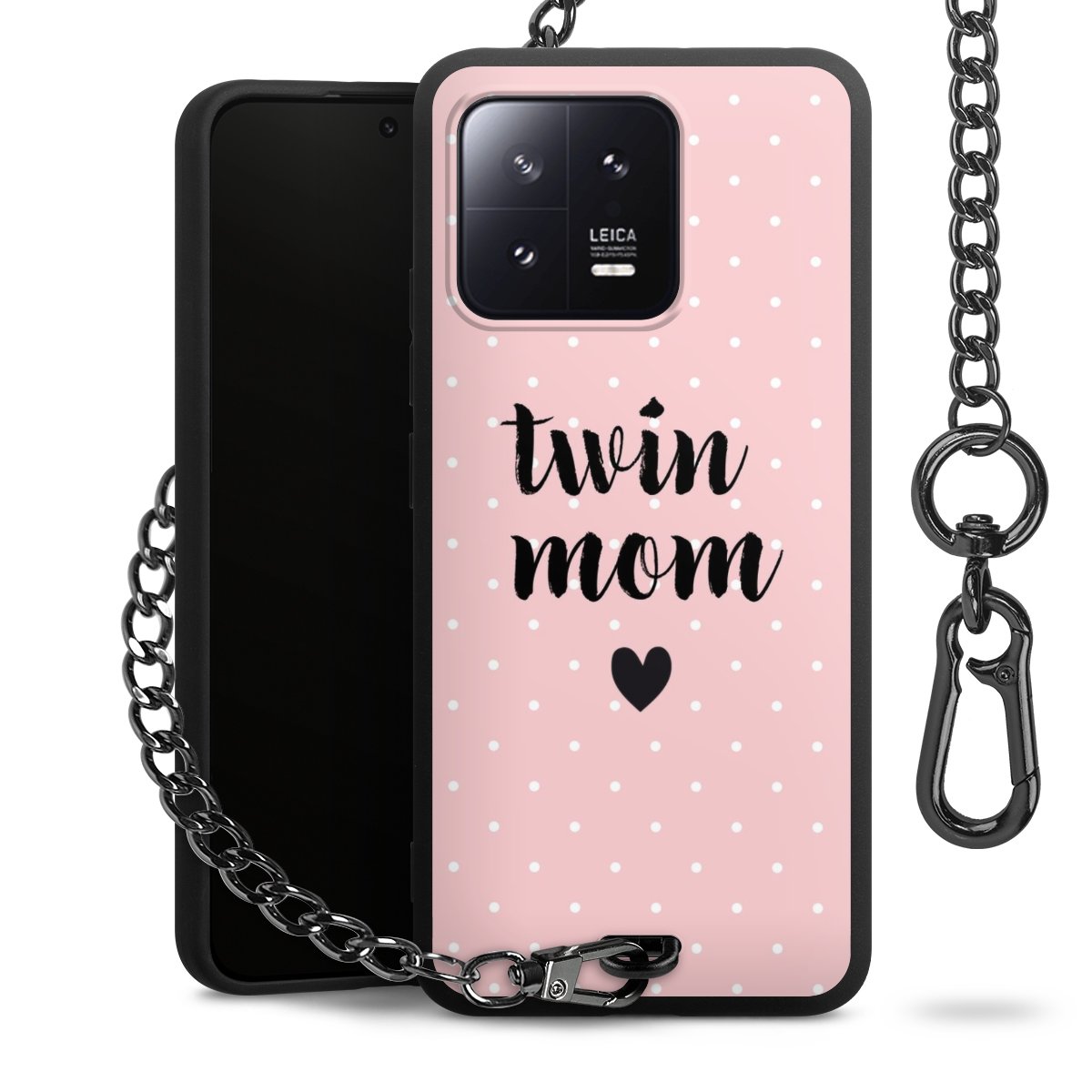 • Mattschwarze Handyhülle mit Metallkette