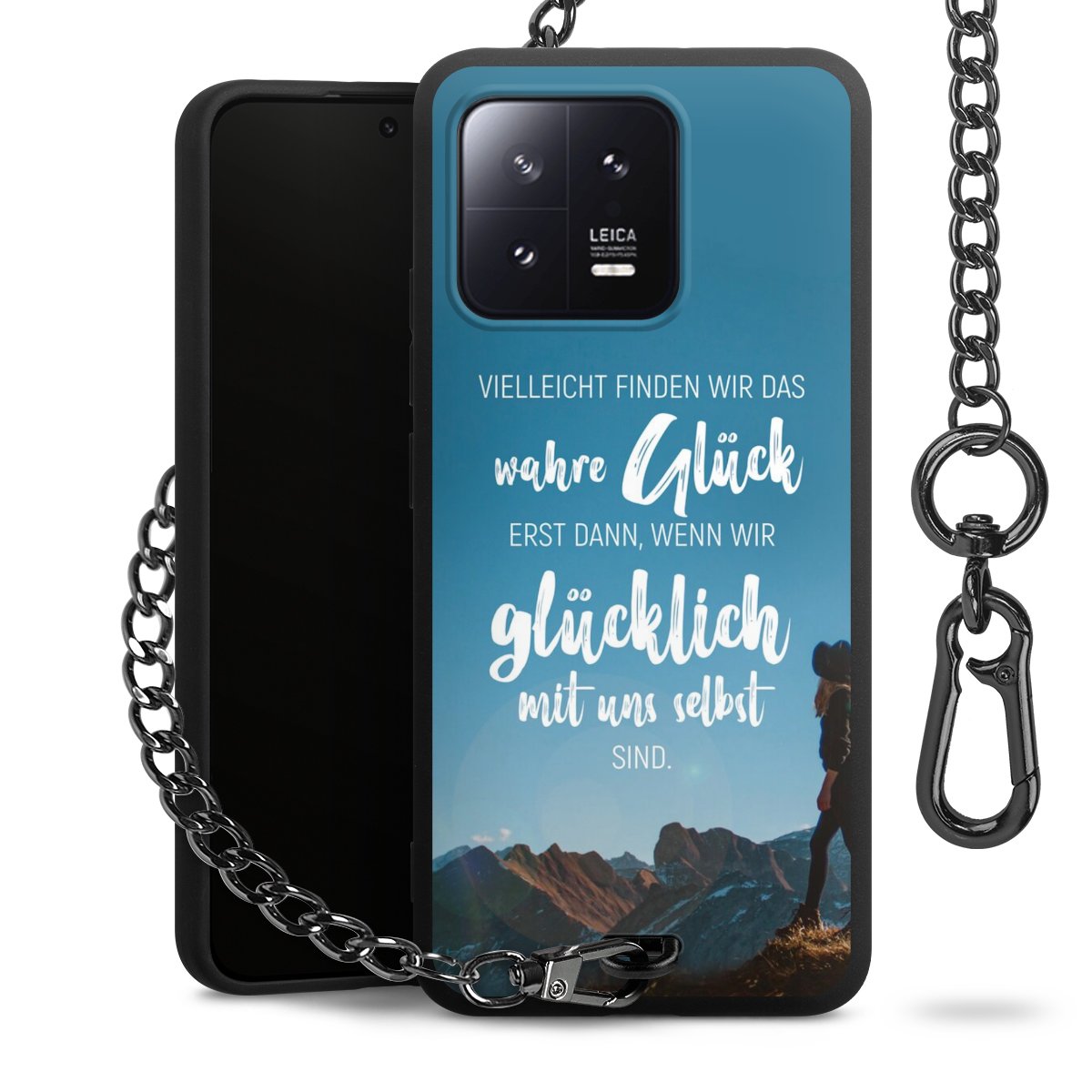 Die mattschwarze Silikon-Handyhülle besteht aus robustem TPU (thermoplastisches Polyurethan). Sie ist flexibel und schützt Dein Smartphone vor Stößen und Kratzern. Die Kette sowie der Karabinerhaken sind aus Metall in Gunmetal-Optik gefertigt. Für dieses Produkt kommen ausschließlich TÜV-geprüfte Materialien zum Einsatz.