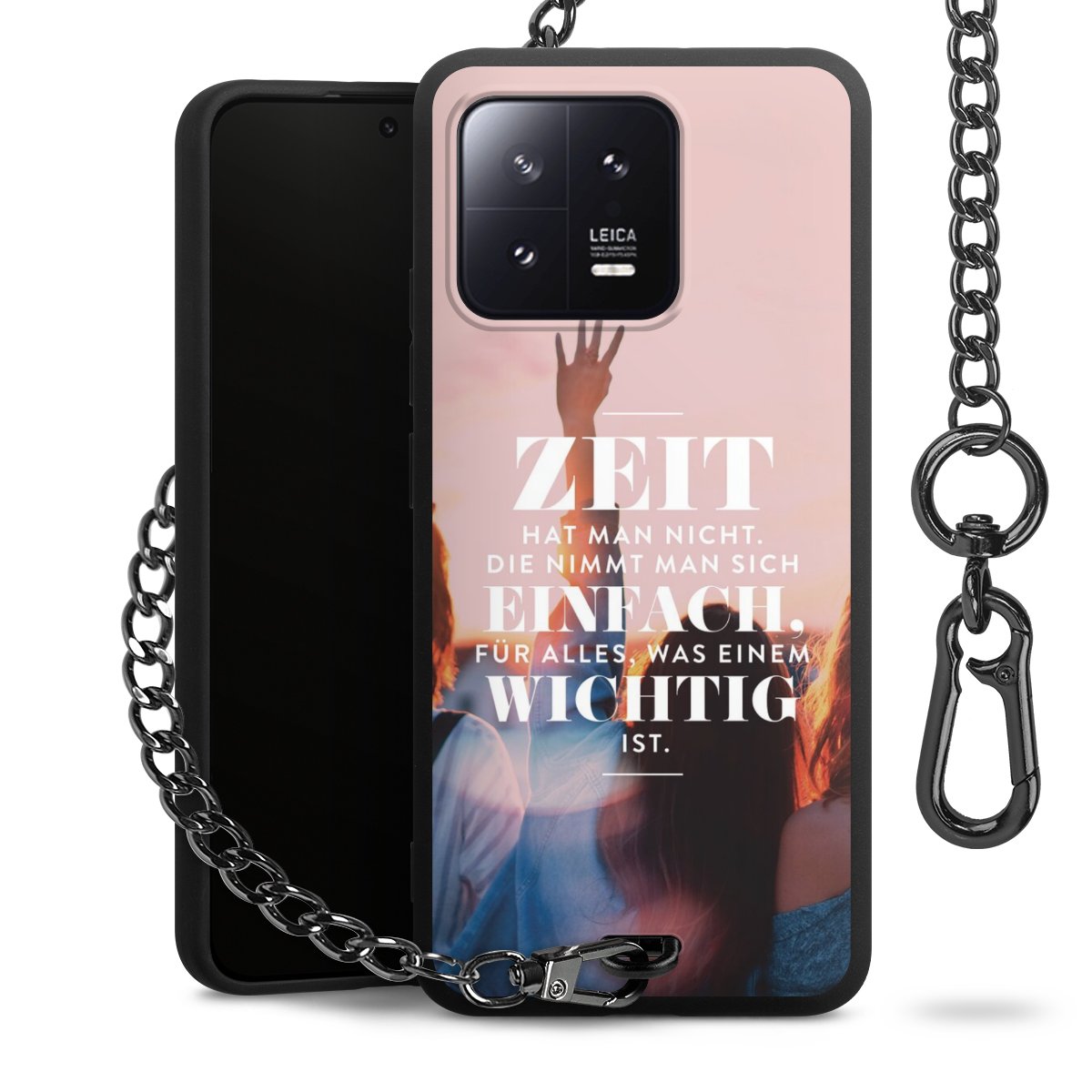 • Mattschwarze Handyhülle mit Metallkette