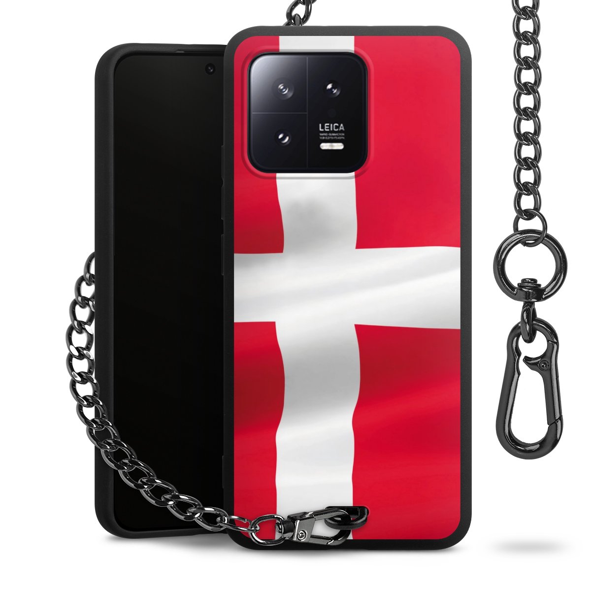 - Mattschwarze Handyhülle mit Metallkette