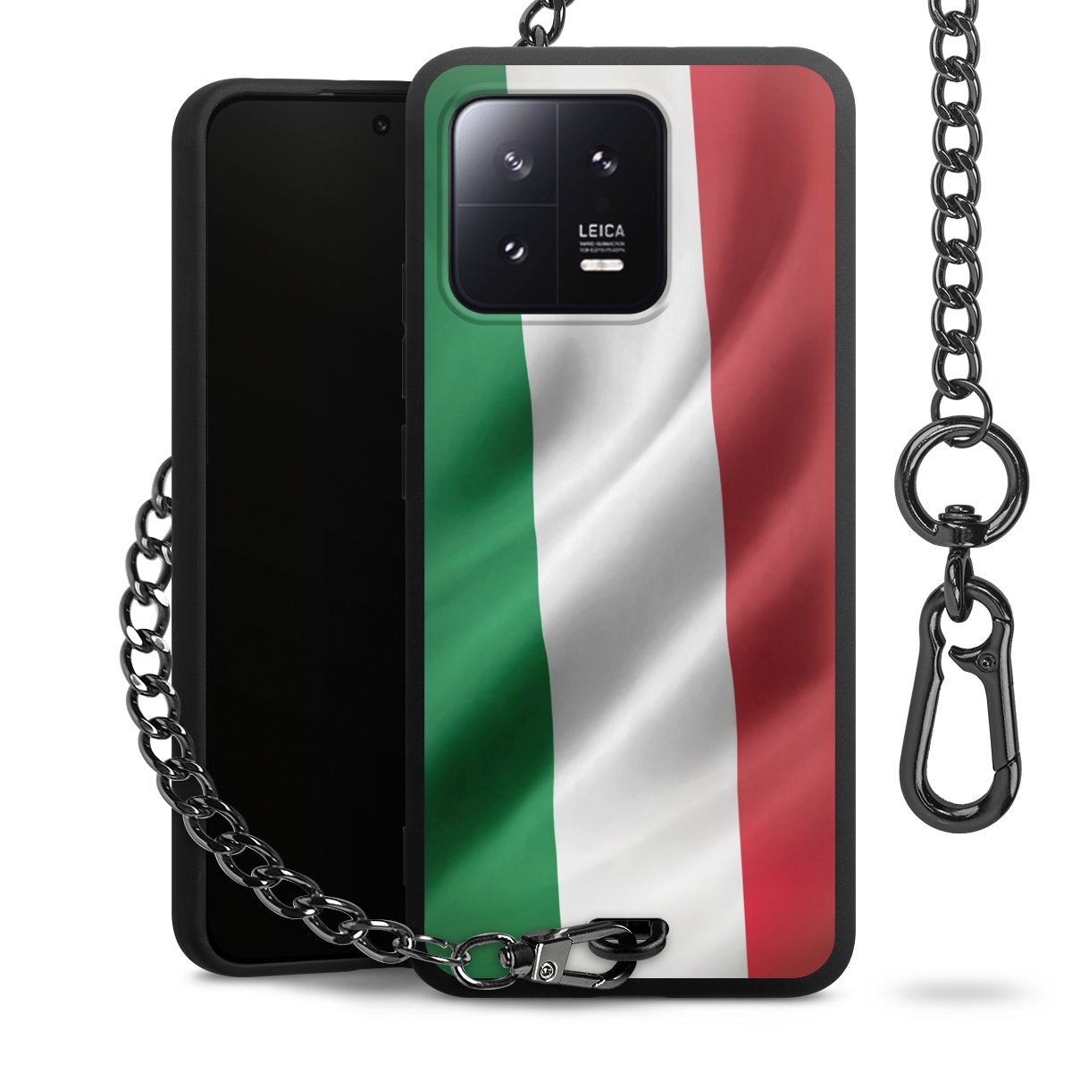 - Mattschwarze Handyhülle mit Metallkette