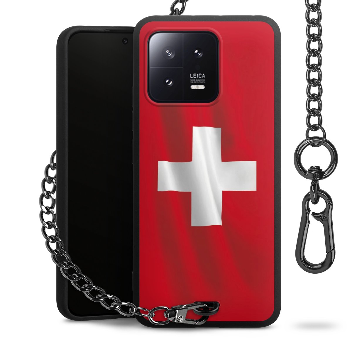- Mattschwarze Handyhülle mit Metallkette